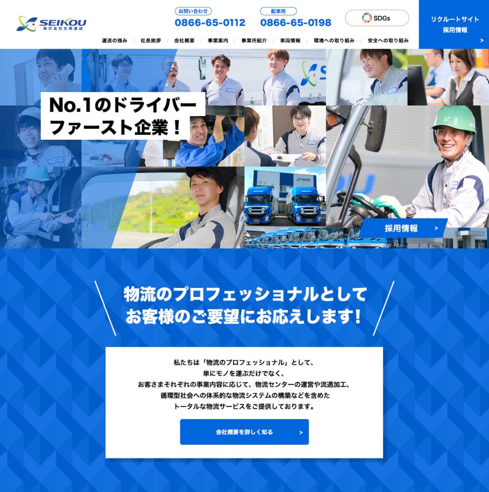 コーポレートカラーのブルーと白を基調に、生興運送様の爽やかなイメージと、スタッフの方々に登場していただく事によりイキイキとした雰囲気が伝わるコーポレートサイトに仕上がりました。